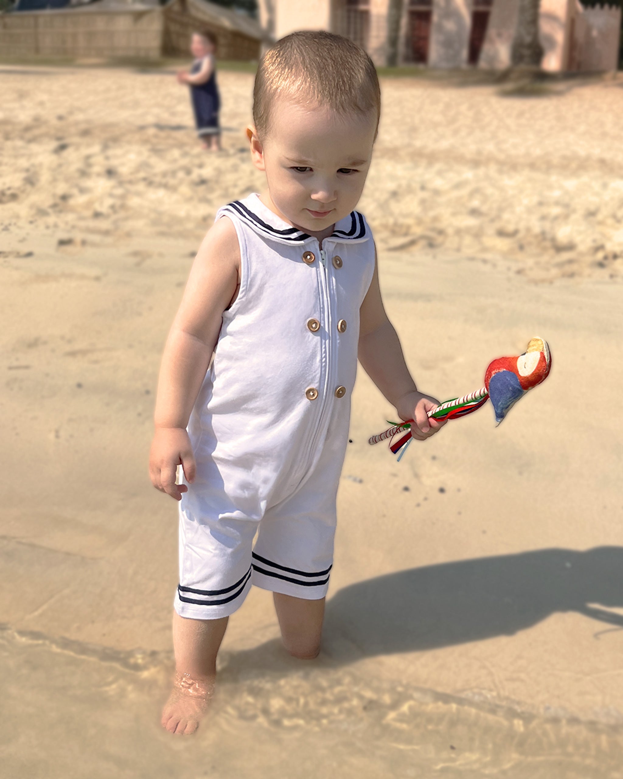في قديم الزمان، انطلق قبطان صغير لاكتشاف عجائب البحر... و هو يرتدي جمبسوت القبطان الصغير، أبحر في قصتي الخاصة المليئة بالمغامرات. تصميمه رائع و مريح؛ عندما أرتديه، أشعر و كأنني قبطان كبير، أقود طاقمي لاكتشاف المحيطات الثمانية و العثور على أطلانطس المفقودة. لتبدأ حكايات البحار!
