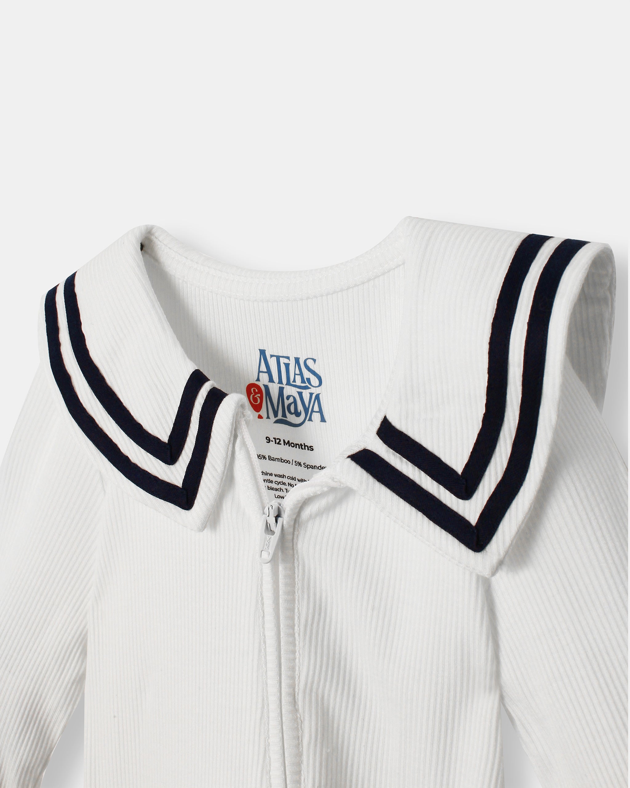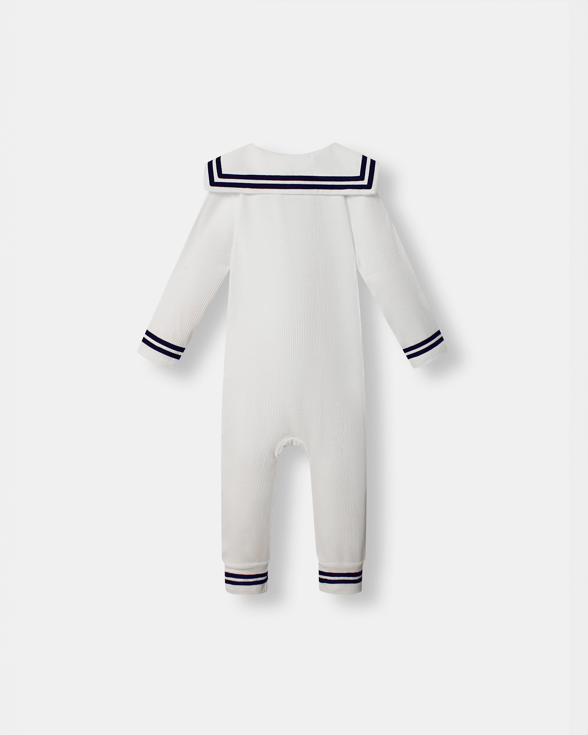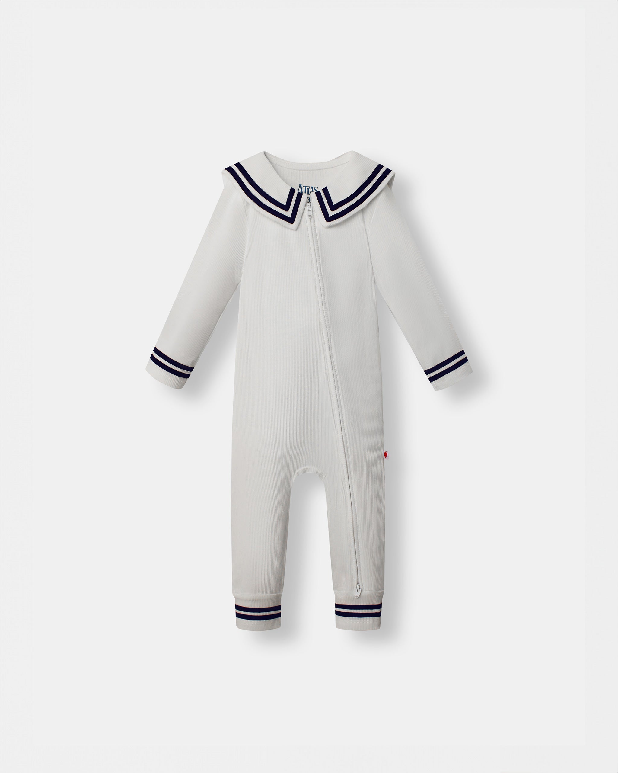 When mommy zips me up, I feel I'm the captain of a big boat. In my "All on board playsuit" I travel the seven seas in my imagination. I love wearing this for long days of fun and adventure. Mom likes she can dress me and change me quickly because it's cool zipper that goes both ways.