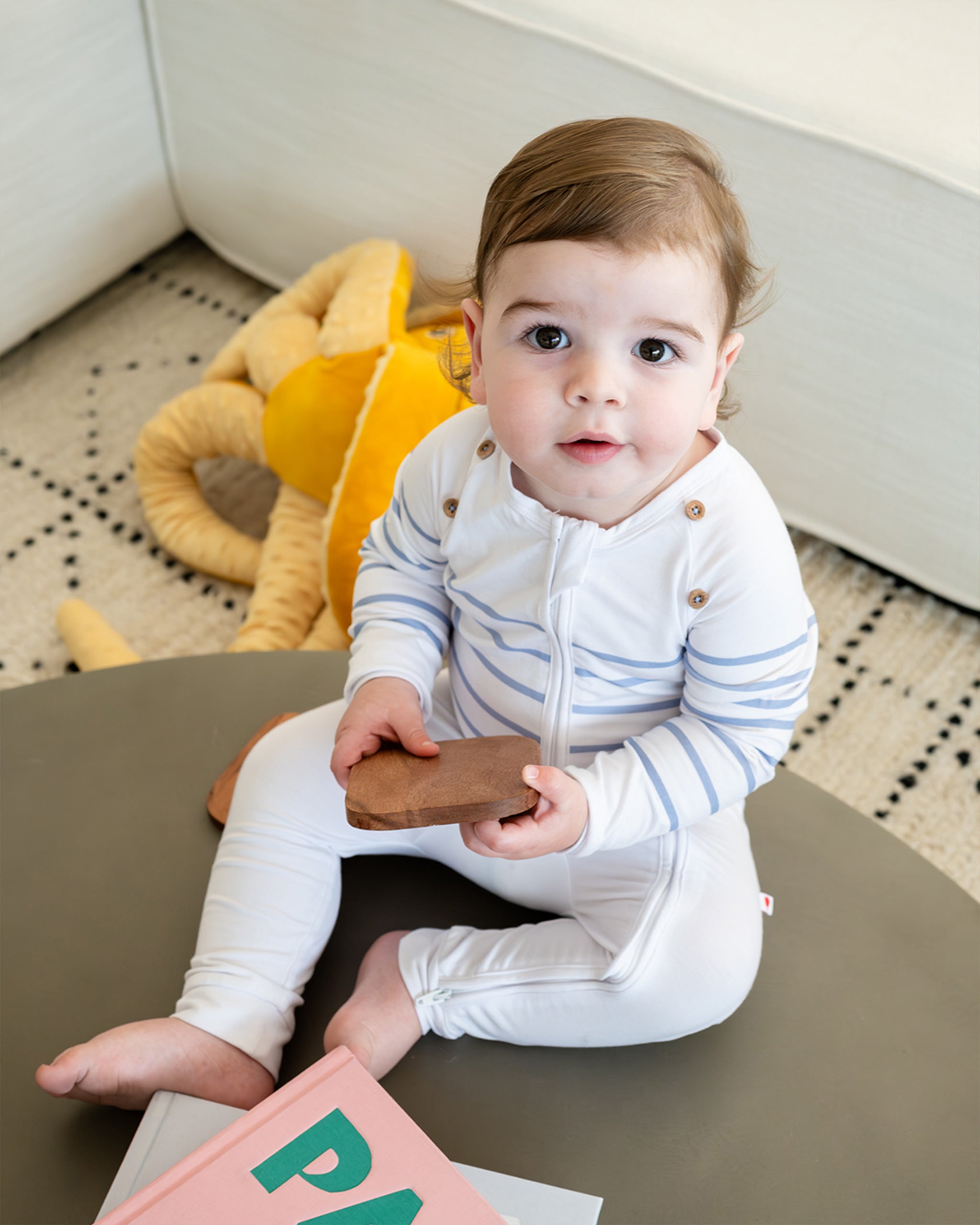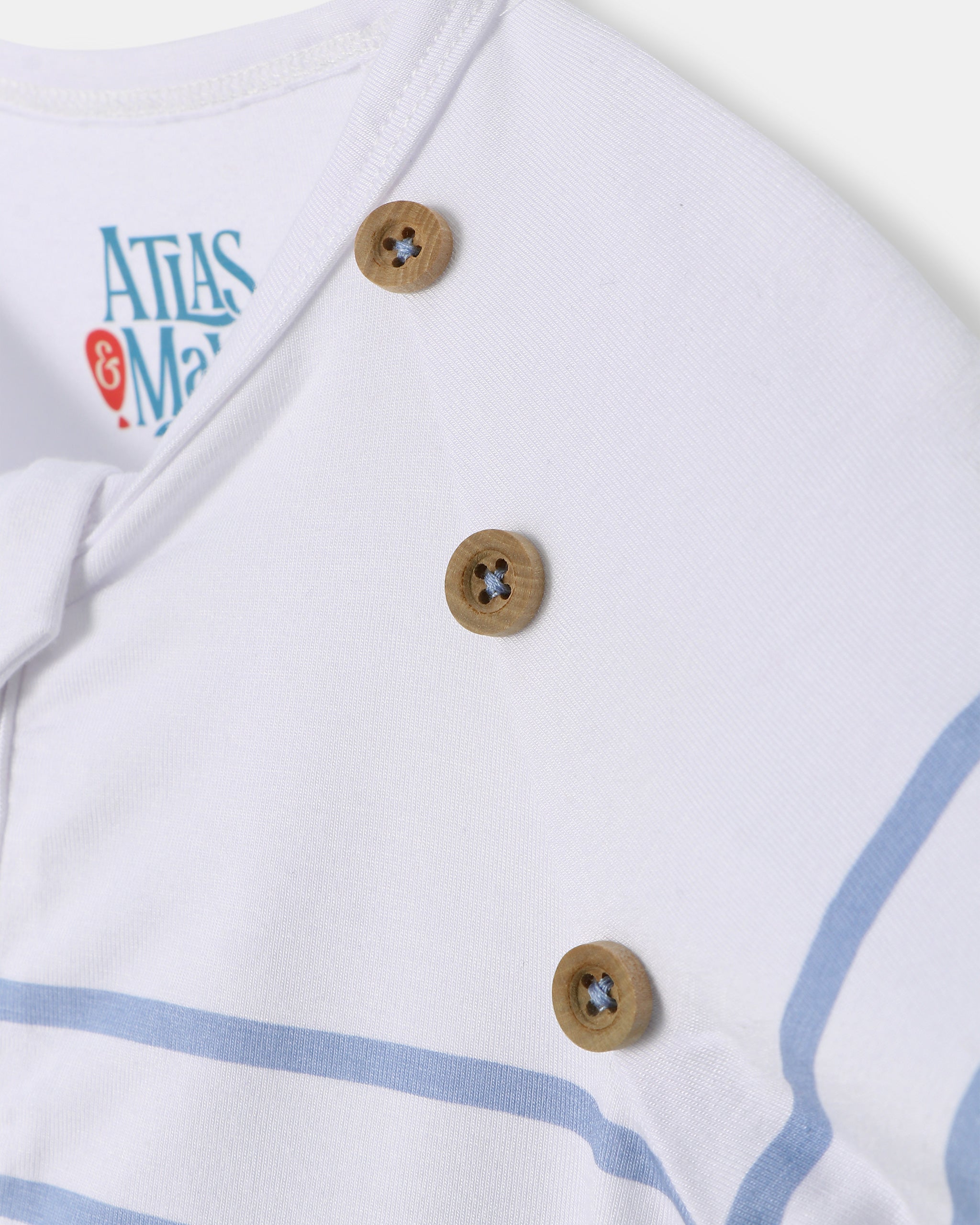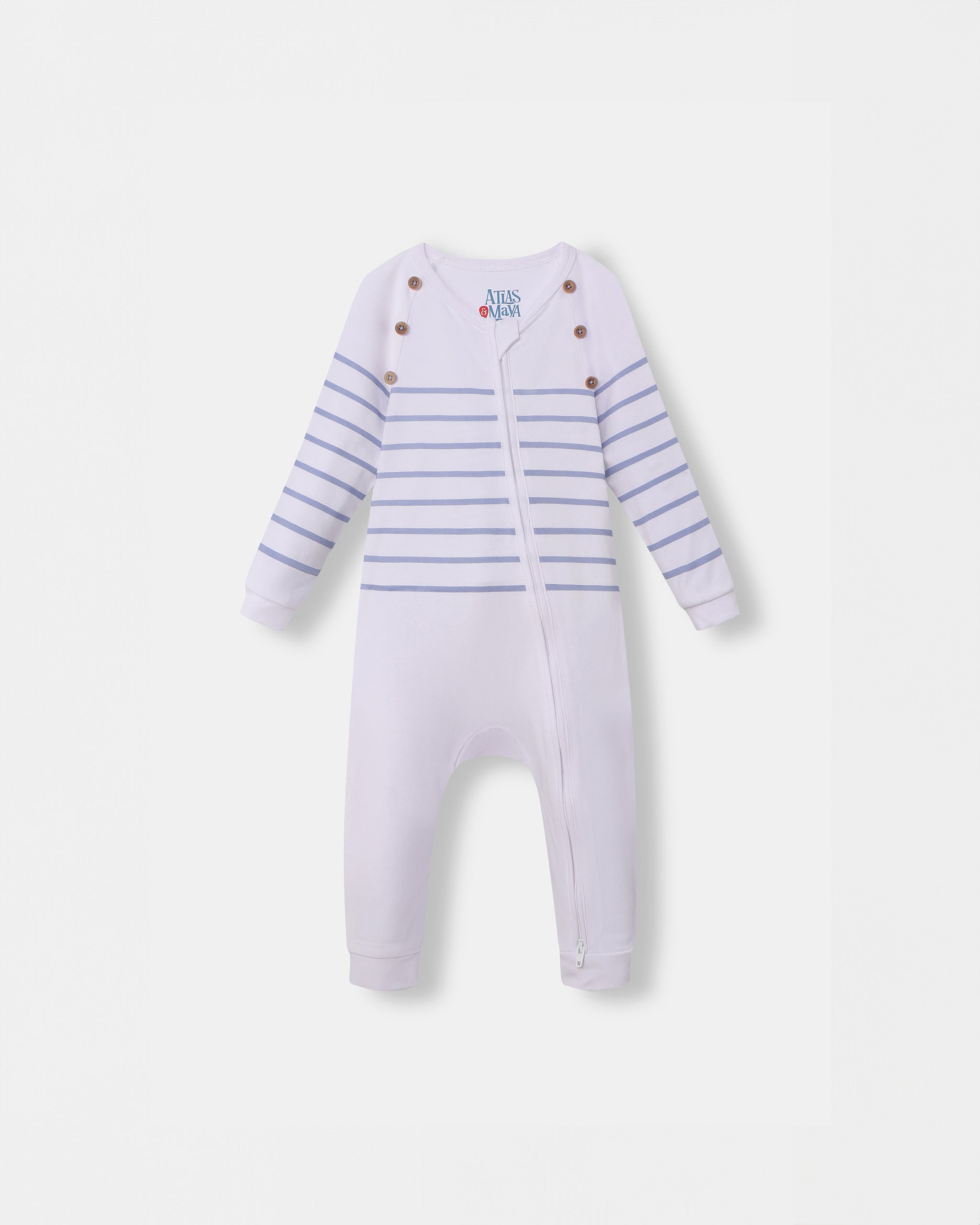 Captain Cuddle Playsuit - White & Blue (Footless)