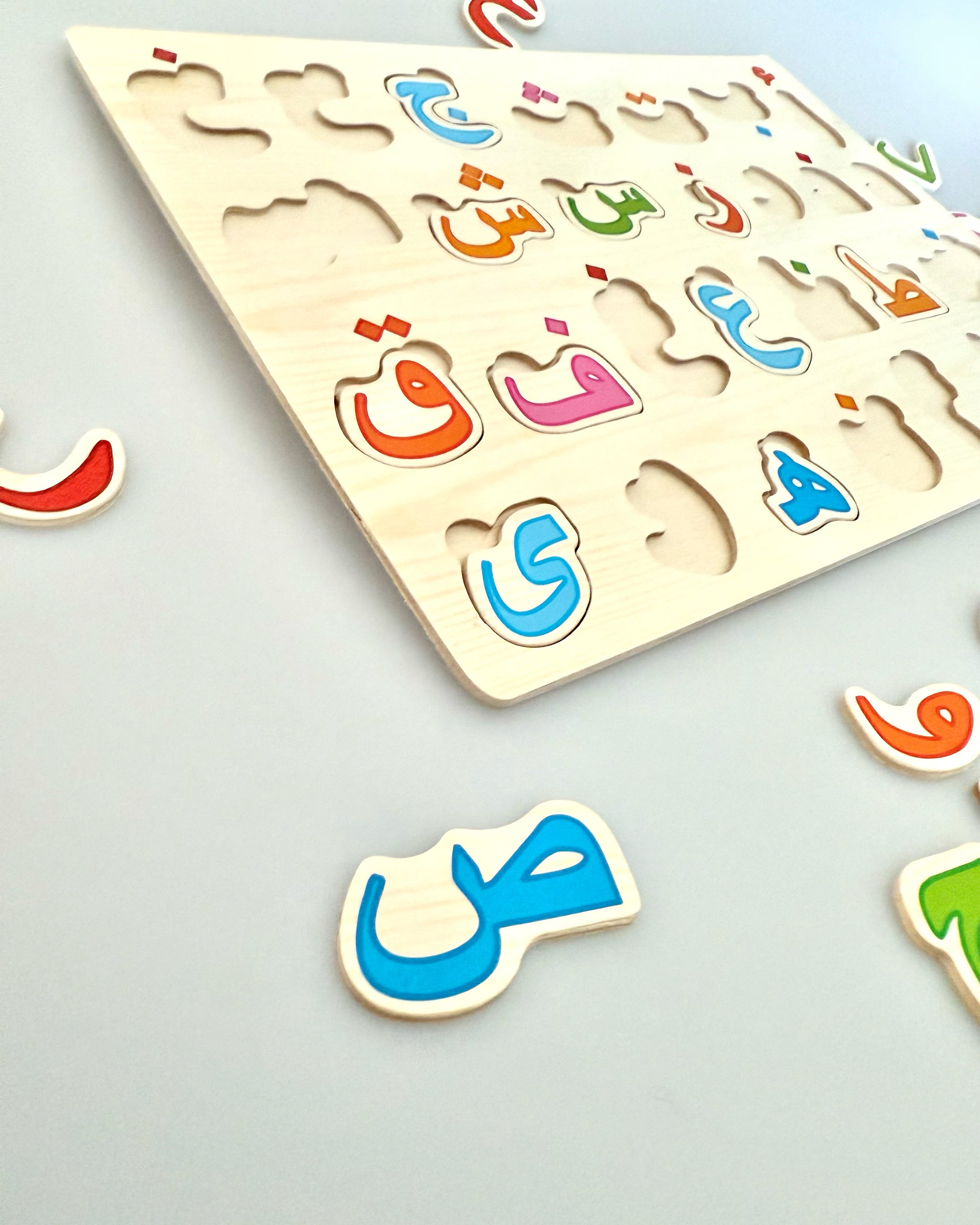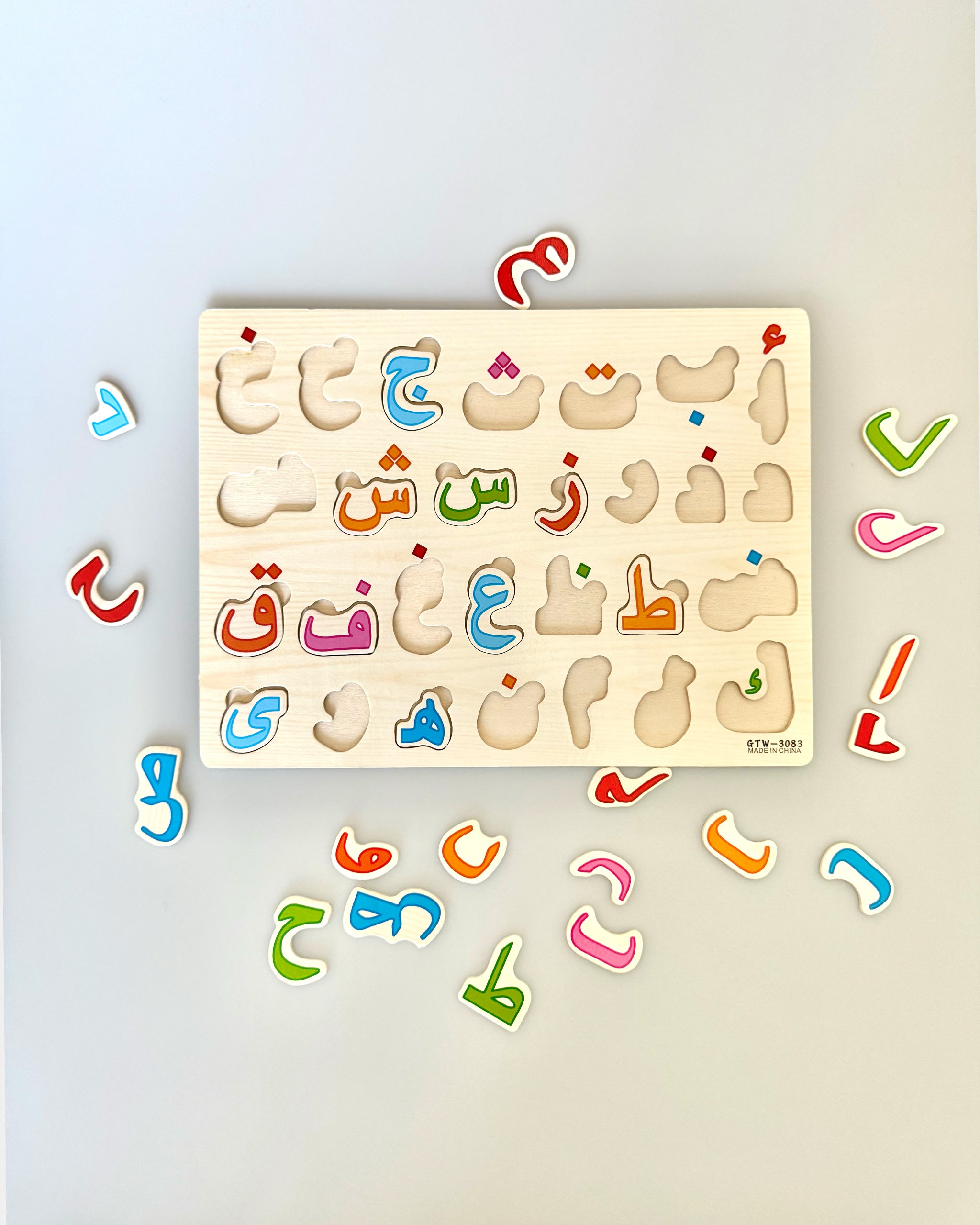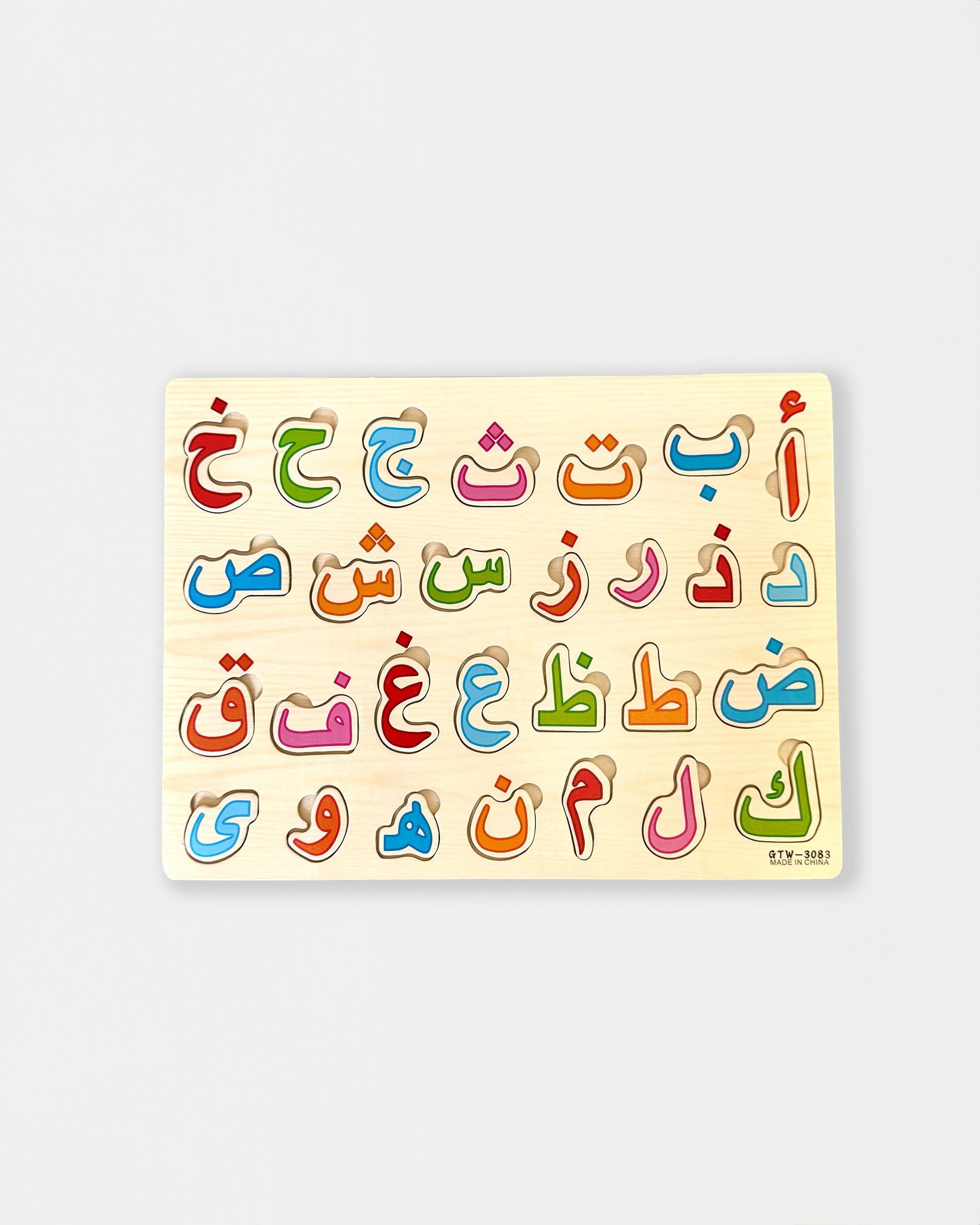 Discover the beauty of Arabic letters with My First Arabic Alphabet Puzzle! Crafted from smooth and light plywood, each letter is thoughtfully designed to fit perfectly into its spot on the board, making it easy and fun for little hands to touch, match, and learn. This puzzle is the perfect introduction to Arabic calligraphy, helping little ones recognize the unique shapes and curves of each letter as they play.