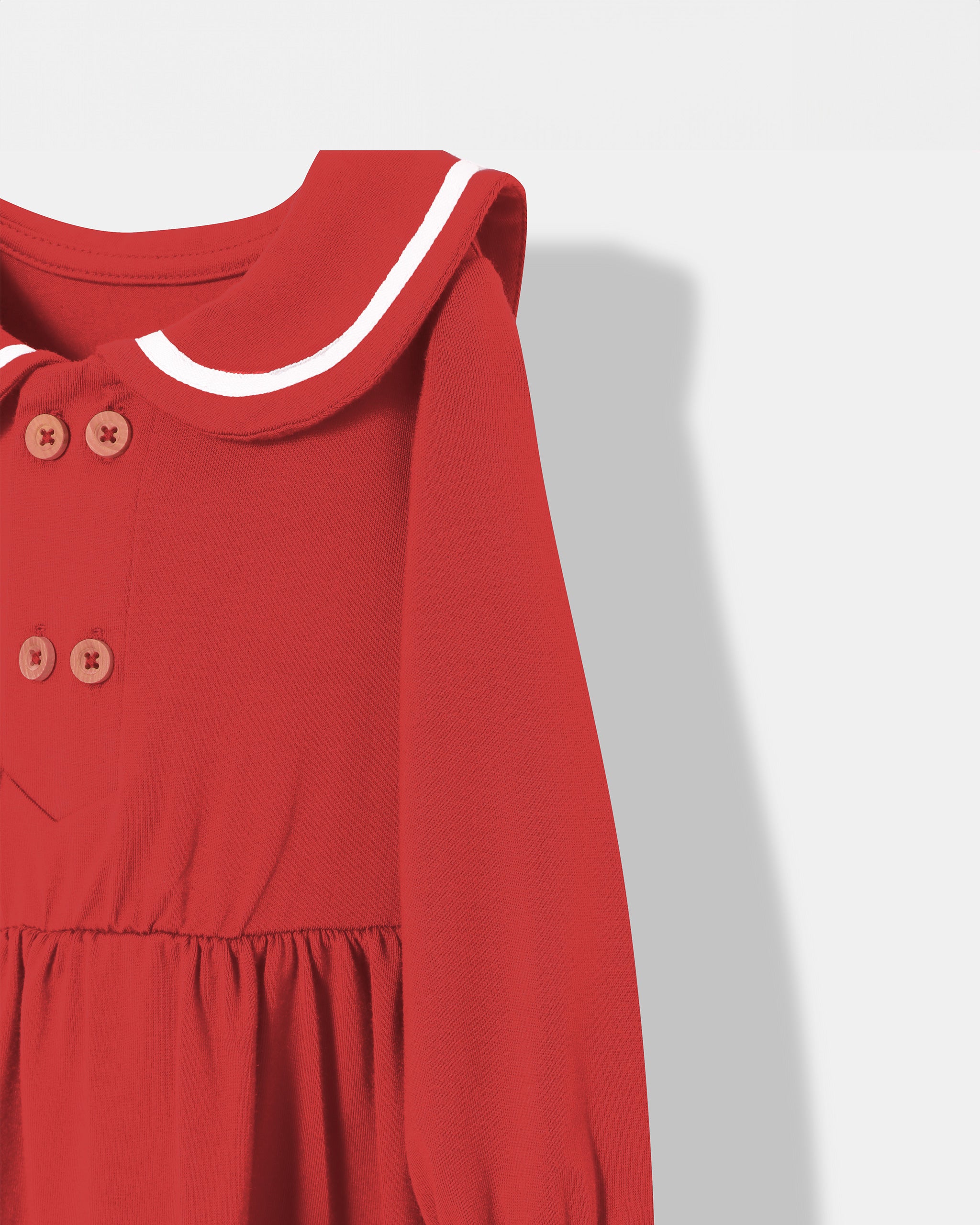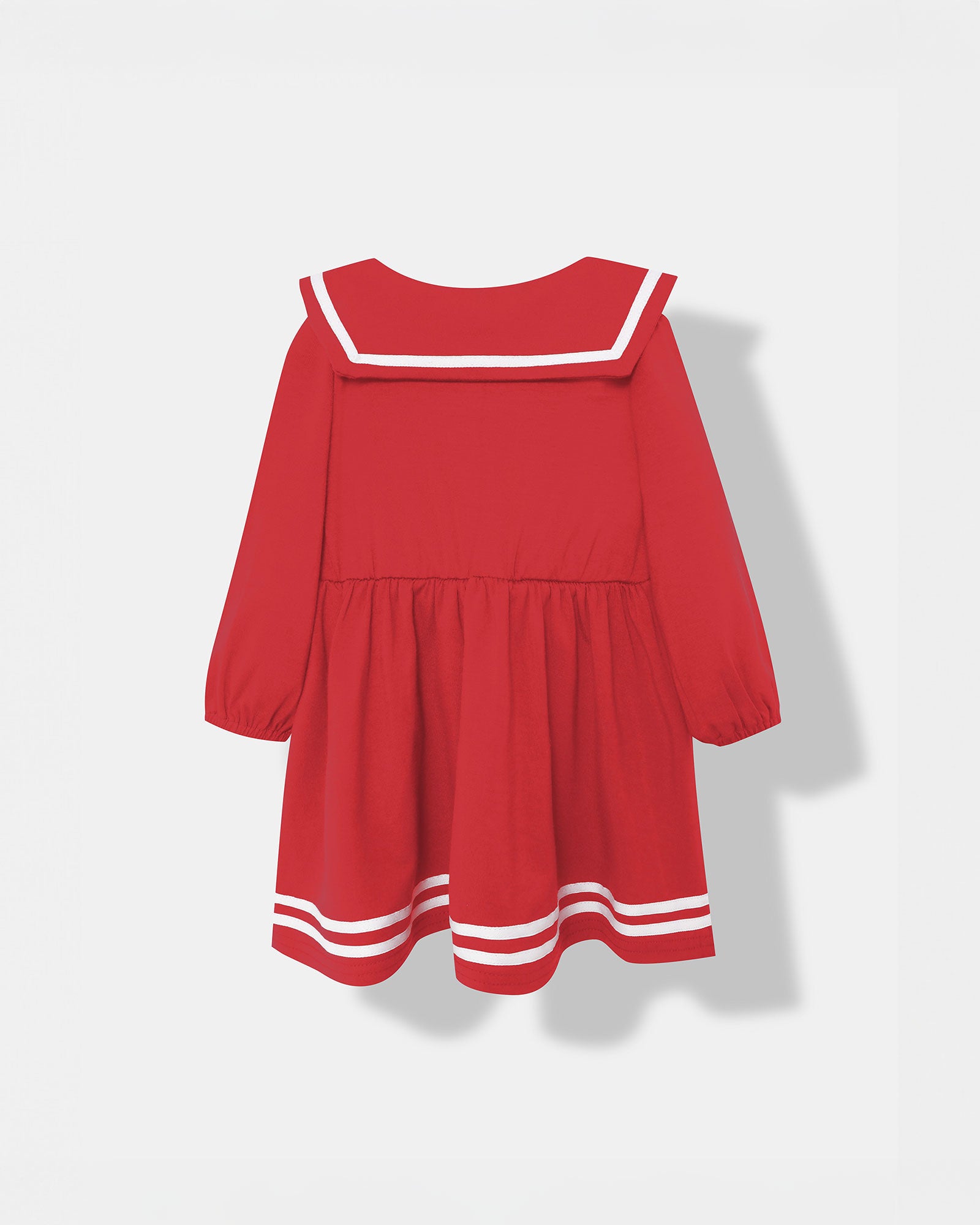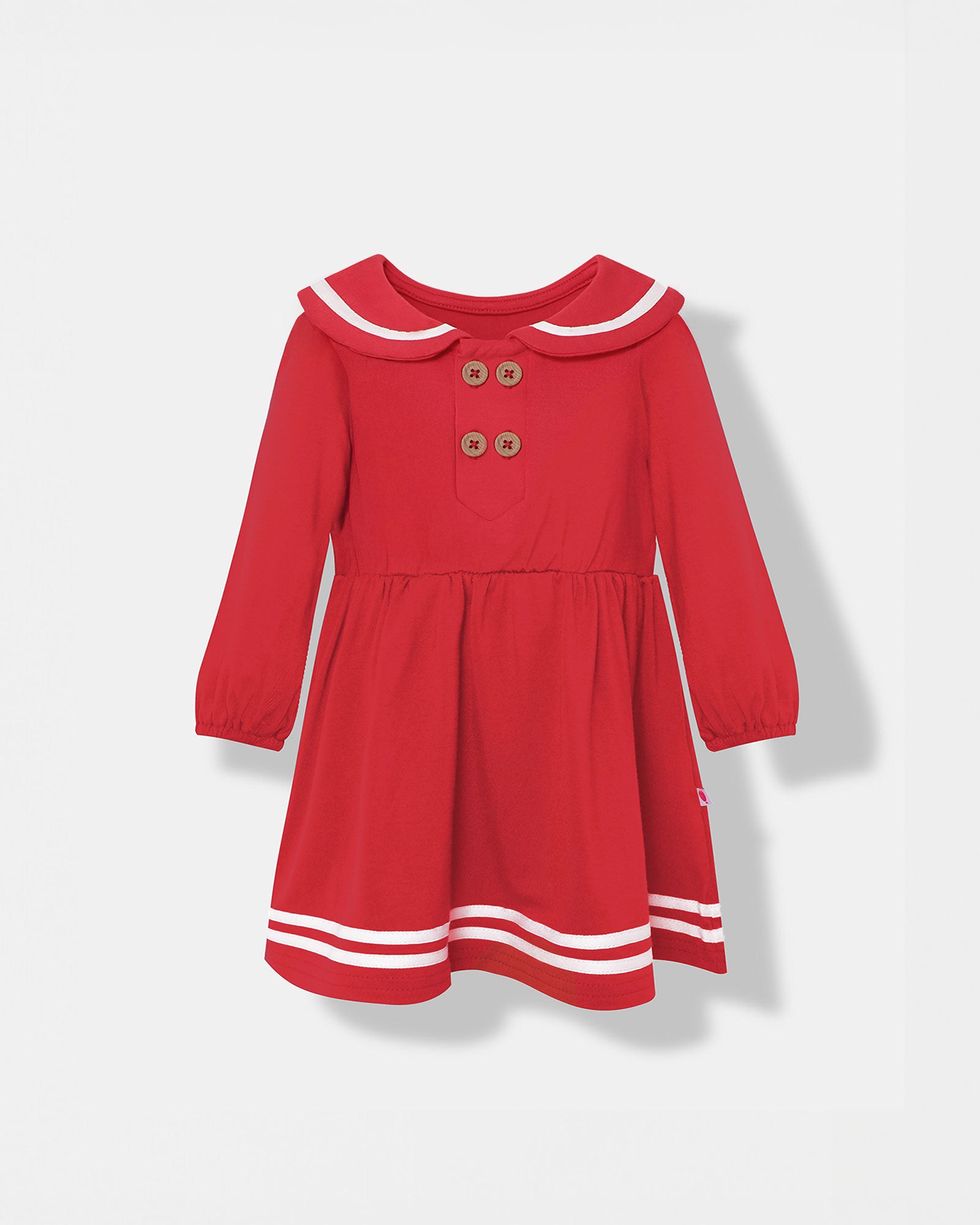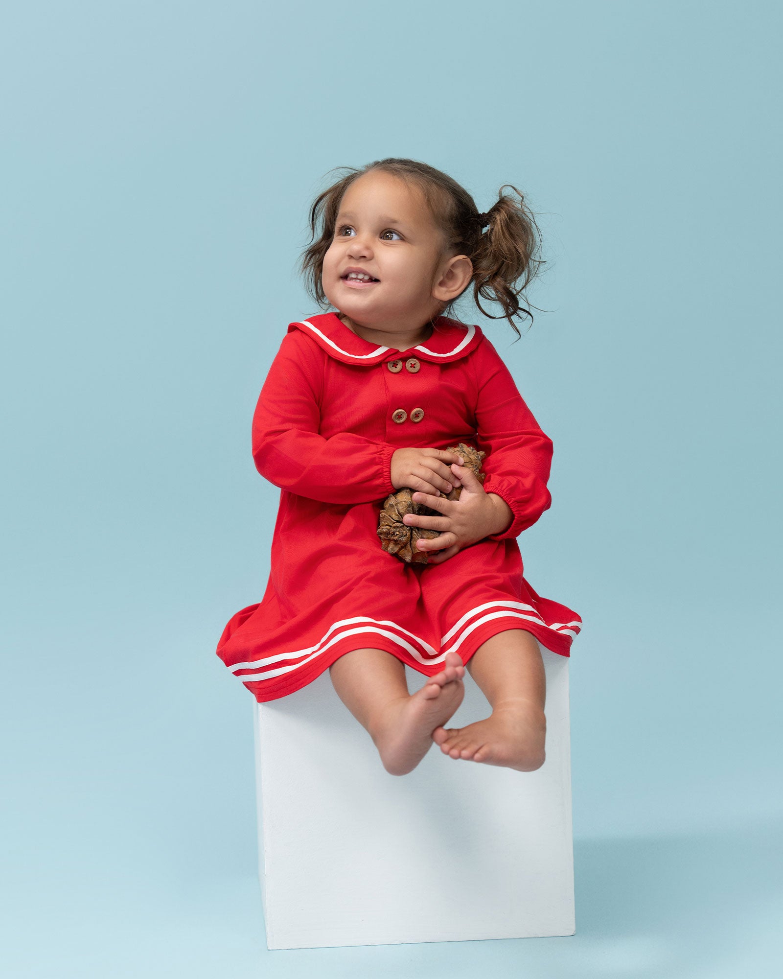 Whether I'm chasing seagulls or dreaming of treasure maps, my First Mate Dress makes every day a high-seas adventure! With its stretchy, comfy fabric, I'm set to navigate through all-day play and never-ending fun. I get to wear this fab dress for playdates and outings, and always get the best compliments.