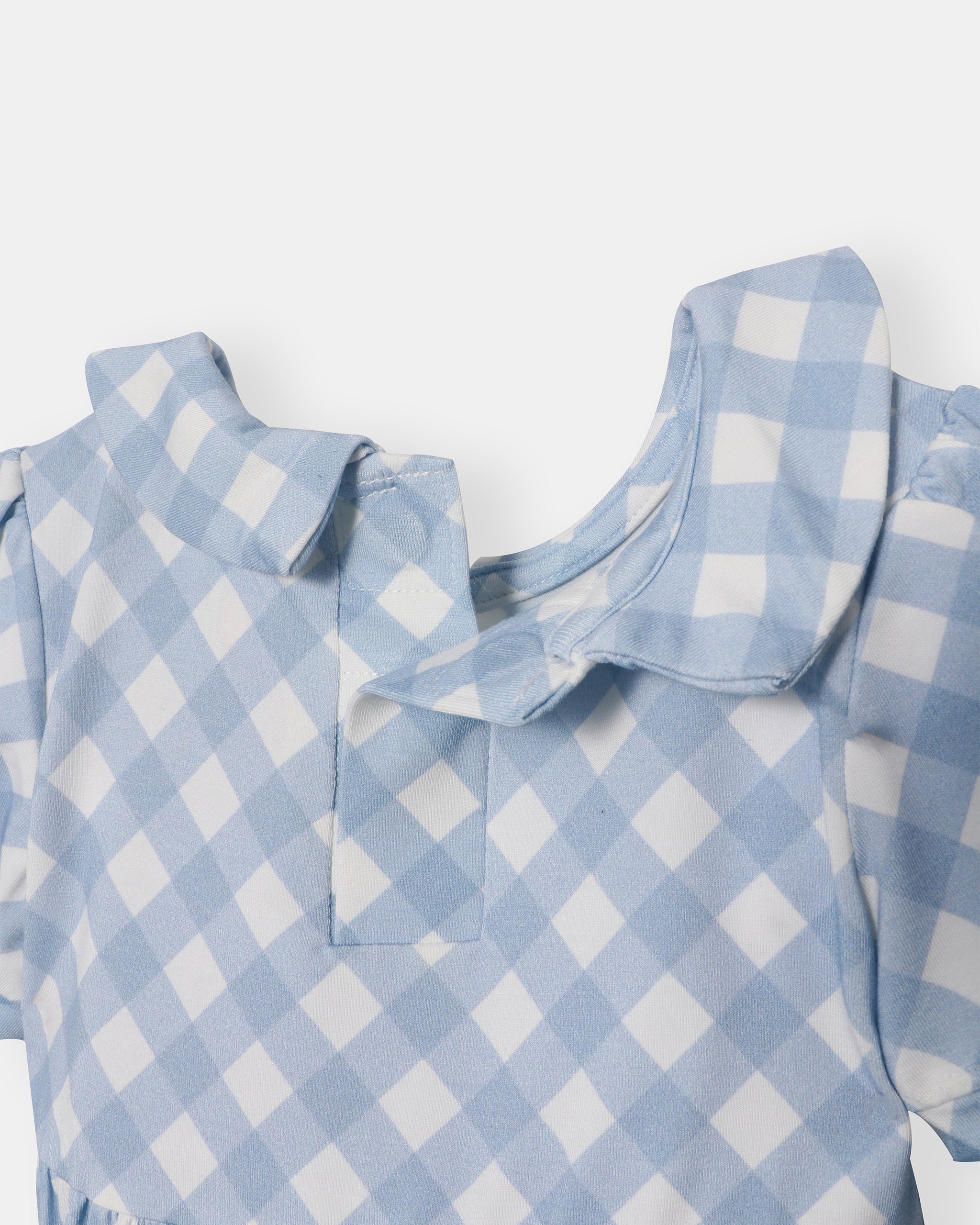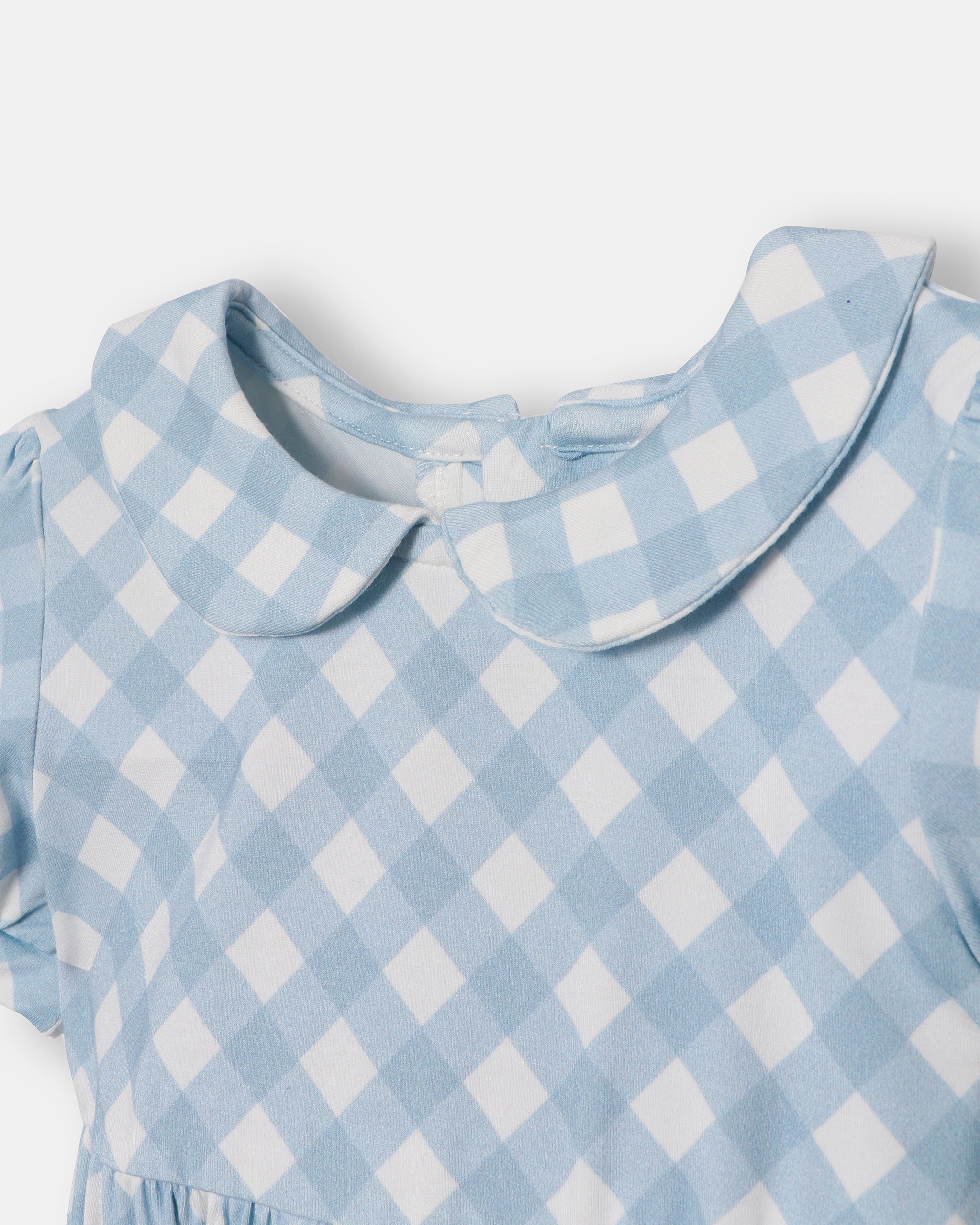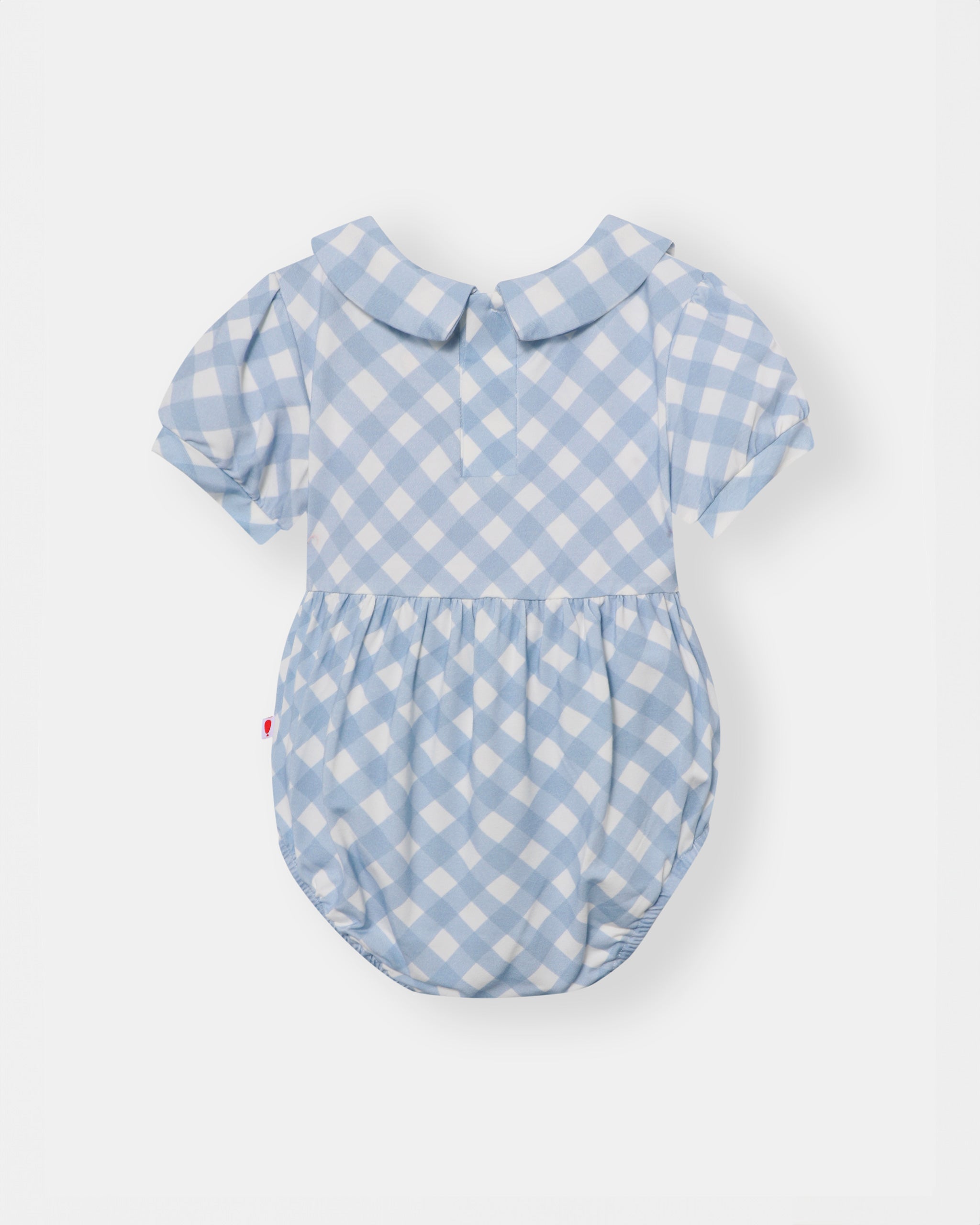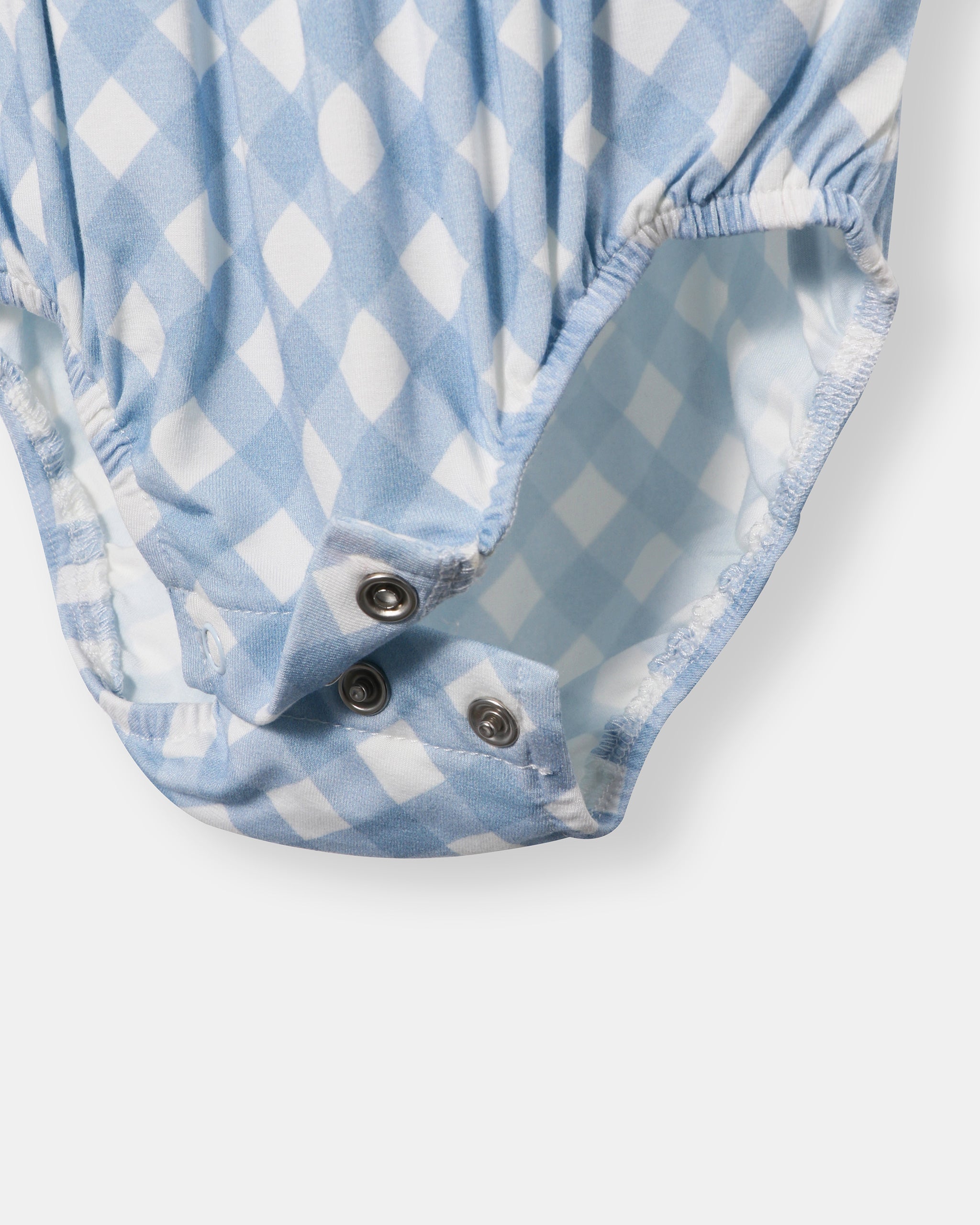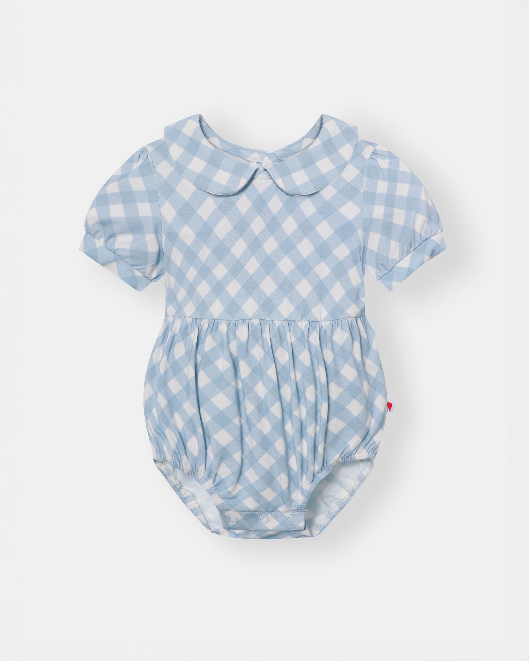 Peter Pan Bubble Magnetic Romper - Sky Blue Plaid