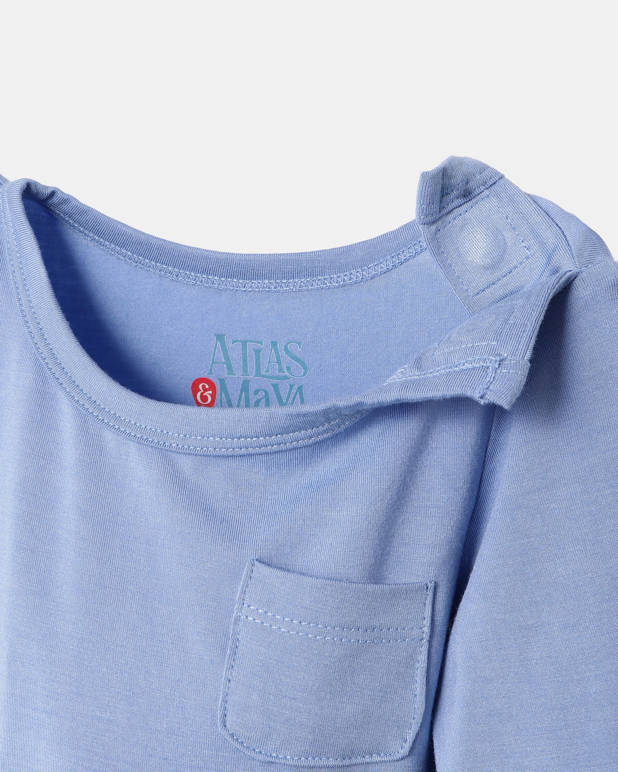 Pocket Long Sleeve Magnetic Bodysuit - Frost Blue